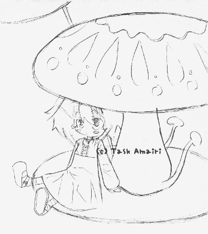 部室で描いた。テーマは「マジックマッシュルーム」(食べちゃ駄目の駄目駄目ー)。